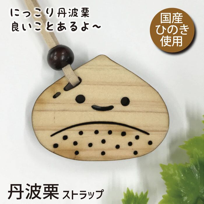 【丹波篠山工房】国産ひのき材仕様ストラップ【丹波栗】